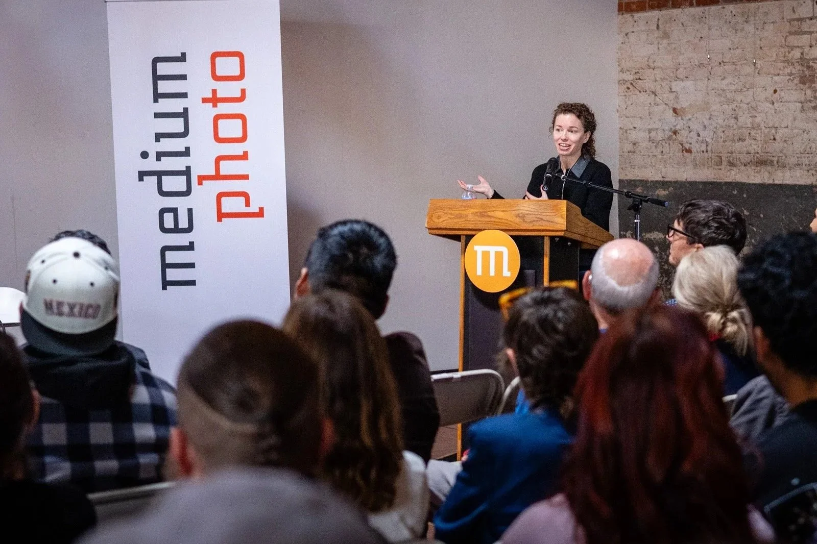 Each Present Tense program begins with a public portfolio walk, where eight artists share a recent photographic project in an informal, conversational setting. From there, four photographers are selected to deliver 15-minute artist talks, offering deeper insight into their work and creative process.